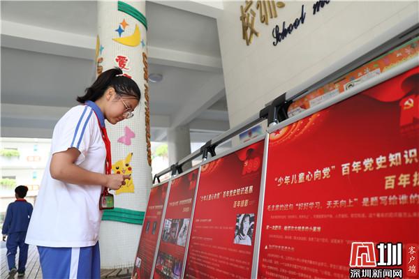 記者首先來到羅湖區(qū)翠北實驗小學(xué),主題展板位于學(xué)校一樓大廳,有很多同學(xué)會在下課的時間來這里觀看學(xué)習(xí)。學(xué)校社工邱女士參與設(shè)計本次活動的時候想到,黨史對孩子們比較遙遠,想要讓孩子們深入學(xué)習(xí)就不能用大人的方式死板教條的灌輸,要調(diào)動孩子們的積極性,讓孩子們自己做“小講師”。