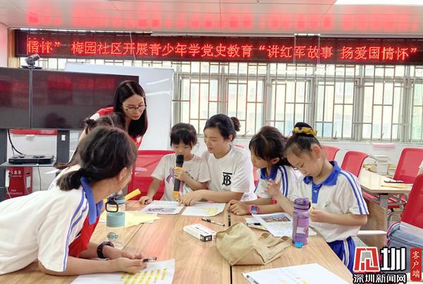 活動現(xiàn)場,社工采用常規(guī)教研學(xué)習(xí)方式以講述紅軍長征故事《張思德“嘗百草”》《女戰(zhàn)士小董》等為切入點,讓孩子們在每篇故事里學(xué)習(xí)革命烈士的事跡。