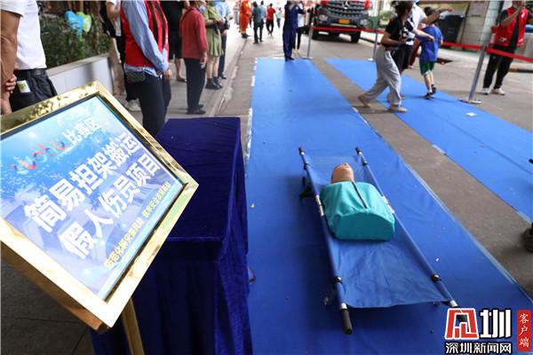 活動現(xiàn)場,宣傳教育區(qū)、技能展示區(qū)、互動體驗(yàn)區(qū)、趣味比賽區(qū)等人頭攢動,不時(shí)傳來陣陣贊嘆聲、歡呼聲。來自羅湖區(qū)森防大隊(duì)、消防救援大隊(duì)的隊(duì)員們,向群眾講解無人機(jī)、液壓切割機(jī)、消防機(jī)器人等救援設(shè)備、裝備,演示森防油鋸速切木頭、風(fēng)力滅火機(jī)吹磚頭等等比武項(xiàng)目;居民體驗(yàn)使用干粉滅火器;美國心臟協(xié)會AHA導(dǎo)師向居民示范教學(xué)心肺復(fù)蘇急救。趣味比賽區(qū)專門設(shè)置了防汛沙袋搬運(yùn)、疊放競速、簡易擔(dān)架搬運(yùn)假人傷員、4*20M消防水帶接力等獨(dú)具防災(zāi)減災(zāi)特色的趣味比賽項(xiàng)目,吸引了眾多社區(qū)居民積極參與。