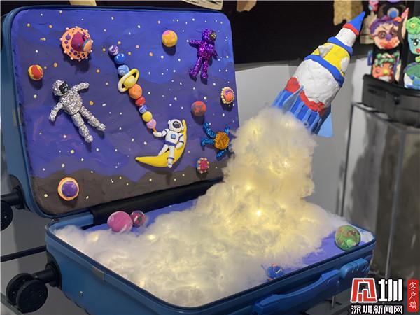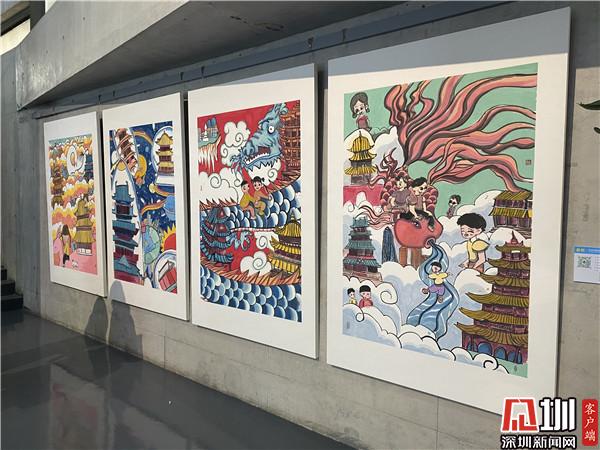 騎著小白兔在天上看四大名樓、把四大名樓帶到宇宙里、在四大名樓上面遇見(jiàn)天空之城……現(xiàn)場(chǎng),幾幅畫(huà)作吸引觀賞者駐留觀看?!皻v代文人墨客用千古名篇頌揚(yáng)四大名樓,而這個(gè)《中國(guó)四大名樓》系列作品,孩子們將與深圳共成長(zhǎng)的切身感受,與歷史畫(huà)卷中的四大名樓發(fā)生靈感碰撞,以簡(jiǎn)單的水墨畫(huà)表現(xiàn)形式,呈現(xiàn)出不可思議的藝術(shù)效果。”作品指導(dǎo)老師于雪在采訪(fǎng)時(shí)介紹說(shuō)道,這一系列的作品,是三四年級(jí)的孩子創(chuàng)作,身高沒(méi)有很高,但是作品的畫(huà)幅很大,而且用的材質(zhì)是宣紙,比較容易破,因此孩子們?cè)诶L畫(huà)過(guò)程中也學(xué)會(huì)了調(diào)整身體的位置和紙張比例,以及更加小心翼翼地保護(hù)自己的畫(huà)作,這也是他們創(chuàng)作中有趣的過(guò)程。
