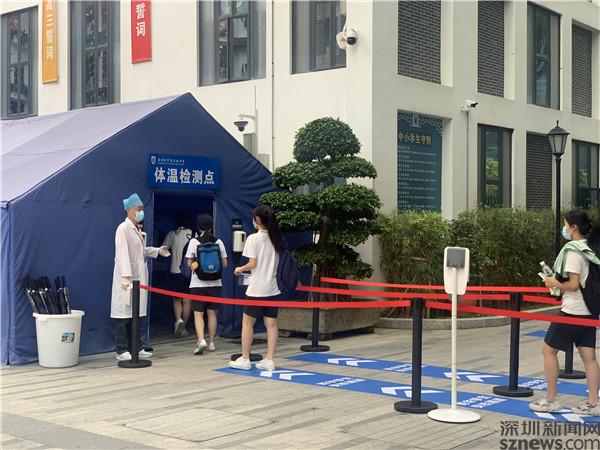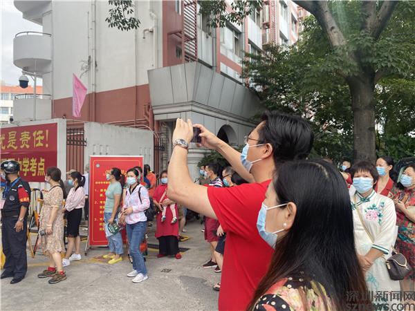 當天上午7:50,記者來到羅湖區(qū)翠園中學和羅湖外語學校門口,只見考生們已陸續(xù)排隊領取準考證,有序進入考場。許多穿著“紅旗袍”戴著“紅口罩”的家長們在紛紛叮囑孩子們后,已在校門口等候。