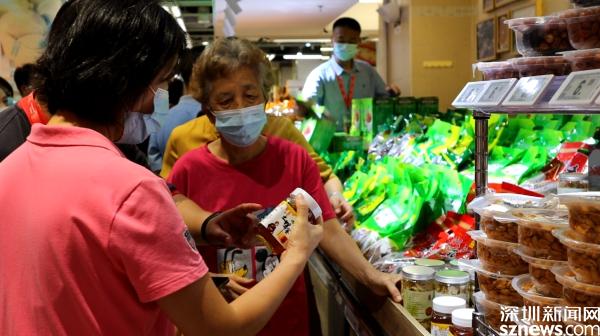 記者現(xiàn)場看到,在華潤萬家蓮塘店二樓,一位店員拿起一瓶來自廣西隆林的農(nóng)產(chǎn)品,向顧客熱情地介紹著?!皨?,我覺得這個不錯,顏色也不是那種很白的,看起來很放心。”顧客拿起一瓶百合干,和同行的母親討論了一下,就放進了購物籃內(nèi),身后不少顧客也拿起商品仔細打量,專柜上“羅湖區(qū)消費幫扶專區(qū)”的字樣引人注目。