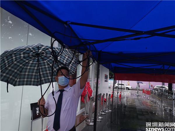 讀特客戶端·深圳新聞網2021年6月21日訊(記者 李慧)6月21日晚及6月22日一早,深圳雷雨交加,深圳市氣象臺2021年06月22日07時10分在多個區(qū)域發(fā)布暴雨紅色預警,羅湖也包括其中。有那么一群人,嚴陣以待、逆雨迎風,堅守在抗疫一線。記者到各核酸檢測點看到,醫(yī)護人員和社區(qū)義工們仍然冒著風雨,堅守在核酸采集的崗位上。