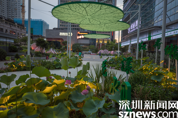 據(jù)介紹,街區(qū)以“花樣水貝、紅荷傳情”為主題,提取荷花、蓮葉等造型元素,應用多品種荷花打造藝術(shù)花境,充分展現(xiàn)荷花的藝術(shù)之美、文化之美。圍繞水貝壹號、水貝金座、水貝銀座、水貝國際等商圈建筑設(shè)置有紅荷傳情、荷葉青青、荷你藕遇、鉆石蓮心、荷荷美美、映日荷花等景點。