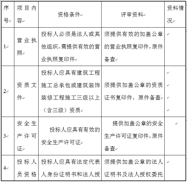 投標(biāo)報名資格審查指引表