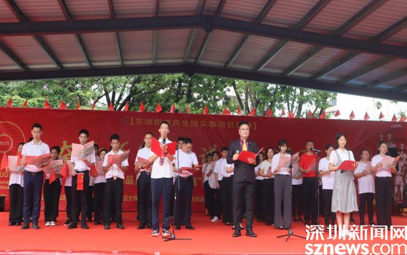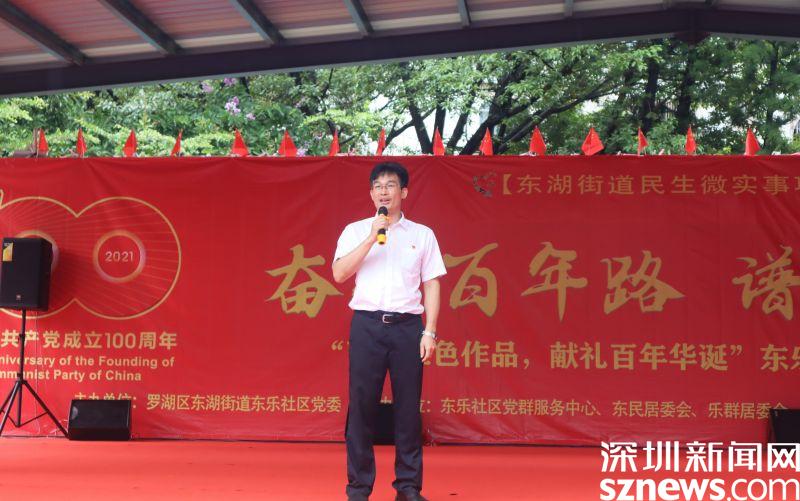 讀特客戶端·深圳新聞網(wǎng)2021年7月30日訊(見習(xí)記者 邱婕 通訊員 黃小花)百年征程波瀾壯闊、百年初心歷久彌堅(jiān)、百年成就催人奮進(jìn)、百年歌聲唱響今天。7月30日上午,“百幅紅色作品,獻(xiàn)禮百年華誕”東樂社區(qū)建黨100周年慶?;顒?dòng)在東樂花園文化廣場舉行。東湖街道黨工委副書記、辦事處主任劉慧堅(jiān),黨工委副書記、人大工委主任謝統(tǒng)敏,東湖街道二級調(diào)研員、東樂社區(qū)第一書記曾列文,東湖街道辦事處副主任李民,羅湖區(qū)退役軍人事務(wù)局副局長何朝陽,東樂社區(qū)黨委書記劉芳,東樂社區(qū)社工與義工及廣大居民朋友400余人參與此次活動(dòng)。