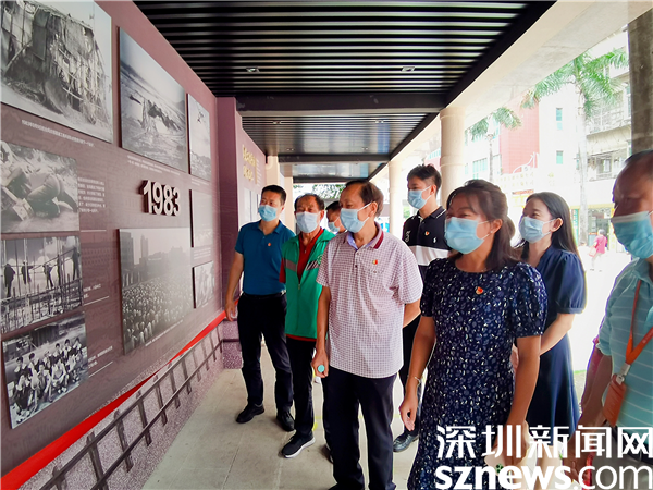 會(huì)后,吳愛華一行到紅崗西村廣場參觀了改造后的文化長廊,在老兵們的介紹下,吳愛華深刻感受到了老兵們當(dāng)年為深圳建設(shè)無私奉獻(xiàn)的愛國之情。她表示,文化長廊真正將深圳基建工程兵這個(gè)群體的拓荒史和不怕苦、不怕累、頑強(qiáng)拼搏、勇于奮斗的“拓荒牛”精神展示得淋漓盡致。