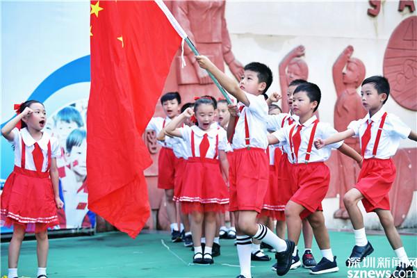 蓮南小學(xué)的開學(xué)典禮上,二(8)班少先隊(duì)員在國旗下,用生動活潑的歌舞,表達(dá)對新學(xué)期的期待,對黨的熱愛。