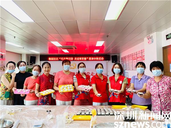 現(xiàn)場有的居民和面、搓餅皮,有的則在一旁稱餡料、壓模具。大家發(fā)揮團結(jié)互助精神,分享自己的方法和經(jīng)驗,現(xiàn)場一片歡聲笑語,制作完成的小小的月餅,承載了濃濃的情誼和愛心。