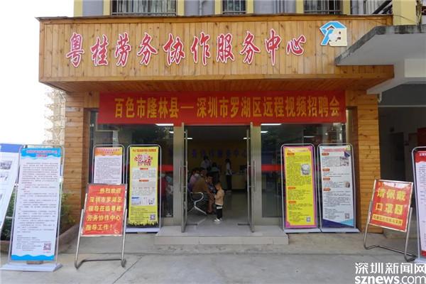 在粵桂勞務協(xié)作服務中心,一場兩地遠程視頻招聘會正在舉行,不少百姓拿著心儀的崗位介紹在等候面試。服務中心前臺放置著四臺電腦,參加面試的人坐在電腦前連接視頻,視頻的另一端,是來自羅湖區(qū)的企業(yè)。這樣的視頻招聘會,定期在服務中心舉行。