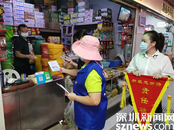 緊接著,東曉街道領導為4名新翠苑市場“治理小縱隊”隊長頒發(fā)“片區(qū)包干責任狀”,各“小縱隊”分頭開展“行走街市”“文明創(chuàng)建”和“門前三包”行動。值得一提的是,蘭花社區(qū)黨委將新翠苑市場劃分為4個包干片區(qū),緊扣黨建引領基層治理主弦,組建與包干片區(qū)相對應的“治理小縱隊”。每個縱隊以社區(qū)工作站、新翠苑市場公司、市監(jiān)所及消防站多方責任主體的黨員為核心,“銀發(fā)”志愿者、清潔工、市場商戶等多元主體共同組成,接受社區(qū)黨委的統(tǒng)一調(diào)度,同時每個縱隊統(tǒng)籌承擔所屬片區(qū)環(huán)境衛(wèi)生、安全巡查、創(chuàng)文迎檢、食品安全等多項職能,實現(xiàn)“多能合一,一隊多能”力量整合,通過頒發(fā)責任狀的形式進一步強化大家在街市治理中的先鋒意識、主人翁意識和責任意識,使“治理小縱隊”成為蘭花社區(qū)黨委黨建引領基層精細化治理的“繡花針”。