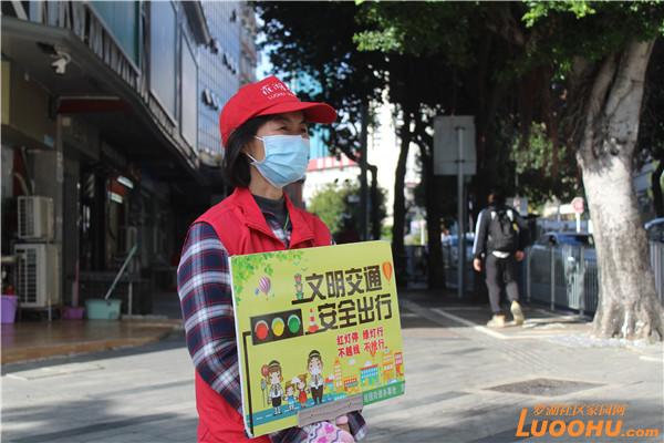 據(jù)了解,老圍社區(qū)黨委將創(chuàng)建文明城市納入常態(tài)化工作之中,黨群服務(wù)中心的社工迅速組建了創(chuàng)文小分隊(duì),長期堅(jiān)守在紅寶路和寶安南路的十字路口勸導(dǎo)交通。這是一條繁忙的十字路口,前有桂園小學(xué),后有盒馬超市,左邊是京基100寫字樓,右邊是地王大廈,周圍都是居民住宅小區(qū),每天車水馬龍,行人如織。尤其上班早高峰,路口更是熙來攘往川流不息。志愿者們守在路口,全神貫注,時(shí)刻留意那些準(zhǔn)備闖紅燈的騎行者,不走斑馬線的行人,勸導(dǎo)他們遵守交通規(guī)則,保障正常的交通秩序。