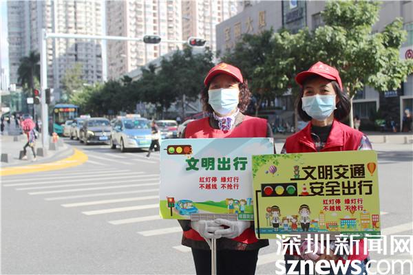 讀特客戶端·深圳新聞網(wǎng)2021年11月9日訊(記者 劉嘉敏 通訊員 楊紀(jì)歐)11月8日早晨,深圳明顯降溫,出行的市民紛紛穿上了厚衣御寒。身穿紅馬甲的義工,手舉“文明出行”的指示牌,在四面迎風(fēng)的路口執(zhí)勤,勸導(dǎo)市民文明出行,營造安全有序暢通的交通環(huán)境,維護(hù)相互禮讓的文明社會風(fēng)尚。他們不畏寒風(fēng),積極投身文明城市創(chuàng)建,踐行“奉獻(xiàn)、有愛、互助、進(jìn)步”的志愿服務(wù)精神,讓志愿服務(wù)之火,點(diǎn)亮城市文明之光。他們是羅湖區(qū)桂園街道老圍社區(qū)創(chuàng)文小分隊(duì)的志愿者,同時(shí),他們也是萬象城U站的義工。