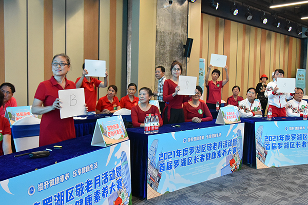 讀特客戶端·深圳新聞網(wǎng)2021年11月19日訊(記者 邱婕 通訊員 涂亮亮)11月19日下午,首屆羅湖區(qū)長者健康素養(yǎng)大賽在翠竹街道金展珠寶廣場舉行。本次活動是由羅湖區(qū)衛(wèi)生健康局、羅湖區(qū)翠竹街道辦事處主辦,羅湖區(qū)老年人協(xié)會、羅湖區(qū)老年人體育協(xié)會、羅湖區(qū)離退休女干部聯(lián)誼會、羅湖區(qū)各街道老年人協(xié)會等單位承辦的2021羅湖區(qū)敬老月系列活動之一,深圳市衛(wèi)生健康委老齡健康處二級調(diào)研員許月琴、羅湖區(qū)衛(wèi)生健康局二級調(diào)研員劉嶺、羅湖區(qū)疾控中心主任陳偉紅和翠竹街道辦事處四級調(diào)研員黃錦方參加了本次活動。