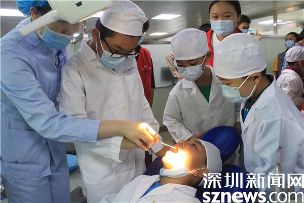 培訓(xùn)結(jié)束,小朋友們穿上白大褂,戴上醫(yī)生帽,變身小牙醫(yī),走進(jìn)診室,拿起棉簽,為“病人”檢查牙齒。10個(gè)小朋友分成5組,互為“病人”和“醫(yī)生”。小“病人”躺在診床上,張大嘴等著檢查。小“牙醫(yī)”在牙科醫(yī)生的指導(dǎo)下,仔細(xì)觀察“病人”的口腔,了解什么是健康的牙齒,什么是出現(xiàn)了問(wèn)題。陳信霏小朋友檢查完“病人”后,對(duì)哥哥說(shuō),“以后可要愛(ài)護(hù)牙齒了,每天早晚按時(shí)刷牙。”哥哥也點(diǎn)頭同意。