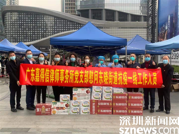 1月10日下午,深圳市人大代表、廣東嘉得信律師事務所主任閔齊雙來到獨樹社區(qū)IBC核酸檢測點慰問抗疫一線工作人員,送上牛奶、功能特飲及水果等慰問品,向奮戰(zhàn)在一線人員致敬和感謝,表示將全力做好一線人員關愛和后勤保障工作,齊心協(xié)力打贏這場硬仗。