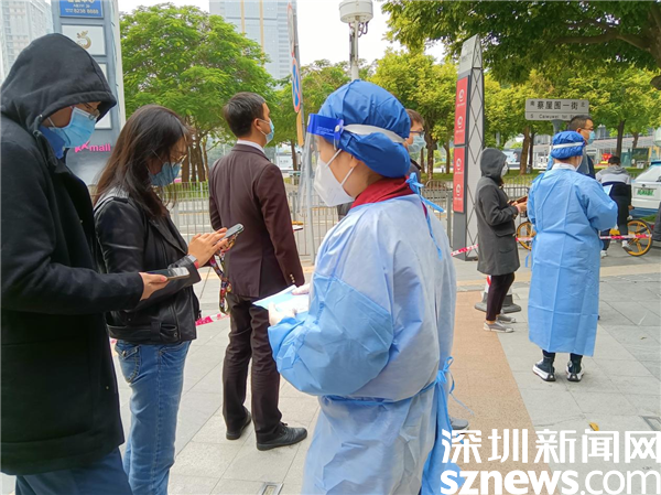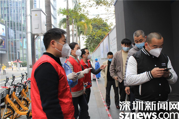 1月14日,深圳市京基智農(nóng)時(shí)代股份有限公司總部黨支部黨委副書(shū)記張玲帶領(lǐng)5位黨員,火速來(lái)到禧程酒店臨時(shí)檢測(cè)點(diǎn),經(jīng)過(guò)簡(jiǎn)短的培訓(xùn),他們集體上崗,各就其位。有的維持秩序,有的在外圍協(xié)助查驗(yàn)綠碼,有的協(xié)助出示粵酸碼。黃子亮和彭乾偉穿上防護(hù)服,現(xiàn)學(xué)現(xiàn)做,使用自己的手機(jī)為前來(lái)采用的市民掃描粵酸碼。他們都是青壯年,雖然這是關(guān)鍵崗位,但他們一學(xué)就會(huì),很快上手。十人一管,掃碼上傳,有條不紊,忙而不亂。
