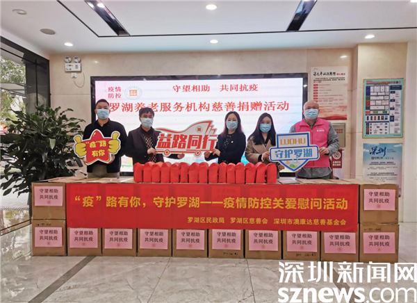 2022年1月17日下午,羅湖區(qū)慈善會聯(lián)合區(qū)民政局舉辦“守望相助共同抗疫——羅湖羅湖養(yǎng)老服務(wù)機(jī)構(gòu)慈善捐贈活動”,為羅湖區(qū)5家養(yǎng)老服務(wù)機(jī)構(gòu)工作人員提供共300份“愛心防疫包”,支持養(yǎng)老服務(wù)機(jī)構(gòu)做好疫情防護(hù)工作,切實保護(hù)在院老人的生命安全和身體健康。