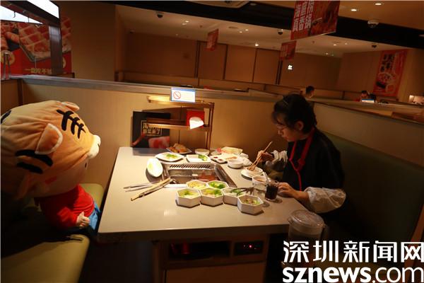 冬季是火鍋消費(fèi)的旺季,在用餐高峰期,位于深圳市羅湖區(qū)這家連鎖火鍋店里,可見門口顯眼處貼著“半份菜 滿份愛”的海報(bào),店內(nèi)還有光盤行動等標(biāo)語,還有一名光盤行動倡導(dǎo)員在餐廳內(nèi)不時(shí)給消費(fèi)者溫馨提示,倡導(dǎo)顧客適量點(diǎn)餐。