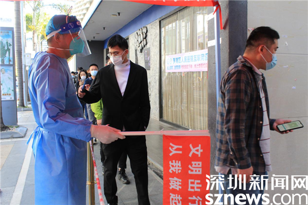 在2月份剛開始做義工的那幾天,深圳遭遇寒潮,他衣衫單薄,舉著粵核酸碼的牌子,手都凍僵了。但當(dāng)社工問他冷不冷,要不要回去添加衣服時,他都說不冷。曾勇林不愿離開崗位,因?yàn)橛辛怂囊龑?dǎo)、維持,有他協(xié)助操作手機(jī),來檢測的居民就可以縮短檢測的時間,就不用挨冷受凍,其他志愿者就可以得到休息。曾勇林寧愿一個人凍著冷著,也要讓更多人受益。