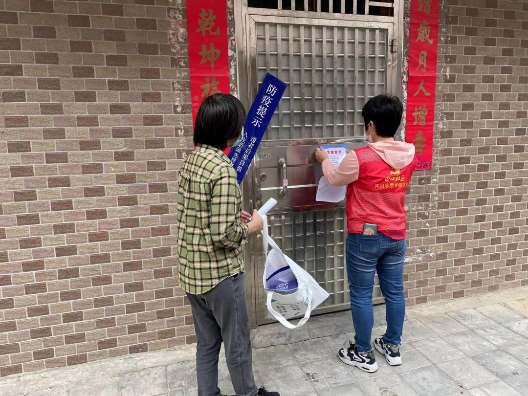 △ 關(guān)工委委員趙為兵、賴碧梅帶頭參與疫情防控工作,動(dòng)員轄區(qū)物業(yè)、熱心居民共同參與抗疫志愿服務(wù)