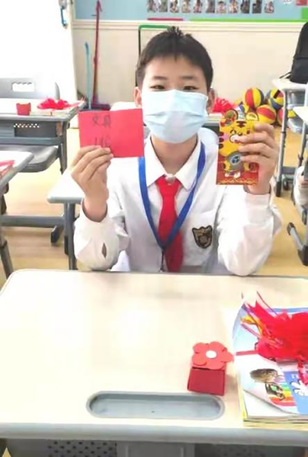 502班的返校儀式“愛(ài)意濃濃”。紅色拉花讓每個(gè)孩子都喜氣洋洋;桌上班主任老師親手折的小禮盒和各式各樣的糖果讓孩子們甜蜜加倍;還有暖心“紅包”,里面有老師們一筆一畫(huà)書(shū)寫(xiě)給孩子們的驚喜,更是寄托了無(wú)限的關(guān)心與激勵(lì)。