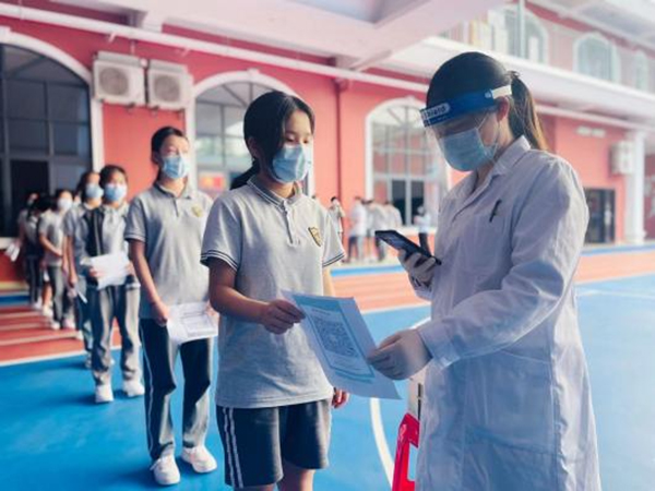 進(jìn)入闊別已久的校園,興奮和激動(dòng)的心情溢于言表,提前兩天入校的初三年級(jí)學(xué)生做出了表率:用餐隊(duì)伍一米距,透明隔斷搭建的用餐區(qū)明亮又溫馨;課間時(shí)間在班主任的帶領(lǐng)下,大家排隊(duì)測(cè)核酸,安靜、有序的隊(duì)伍讓“大白”對(duì)學(xué)生點(diǎn)贊。少年已歸,向陽(yáng)而生;不忘初心,逐夢(mèng)而行。這個(gè)夏天,老師帶領(lǐng)著學(xué)生們一邊防疫,一邊學(xué)習(xí),合力同行,一起向未來(lái)!