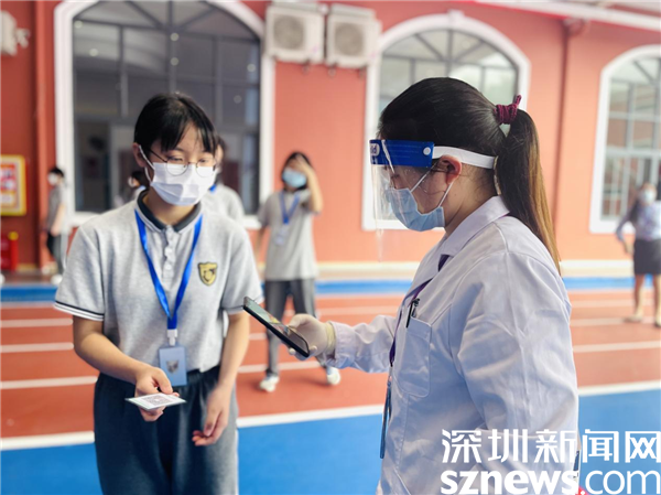 在深圳市諾思外語實驗學(xué)校檢測現(xiàn)場,學(xué)生們在老師的組織下有序排隊進(jìn)行核酸檢測,嚴(yán)格執(zhí)行一米安全線排隊。各班級還準(zhǔn)備了定制姓名的紅色心動氣球、特別定制的核酸檢測卡......班主任和老師們?yōu)閷W(xué)生們準(zhǔn)備了許多的驚喜,讓學(xué)生感受到回歸校園和班集體的溫暖與快樂。