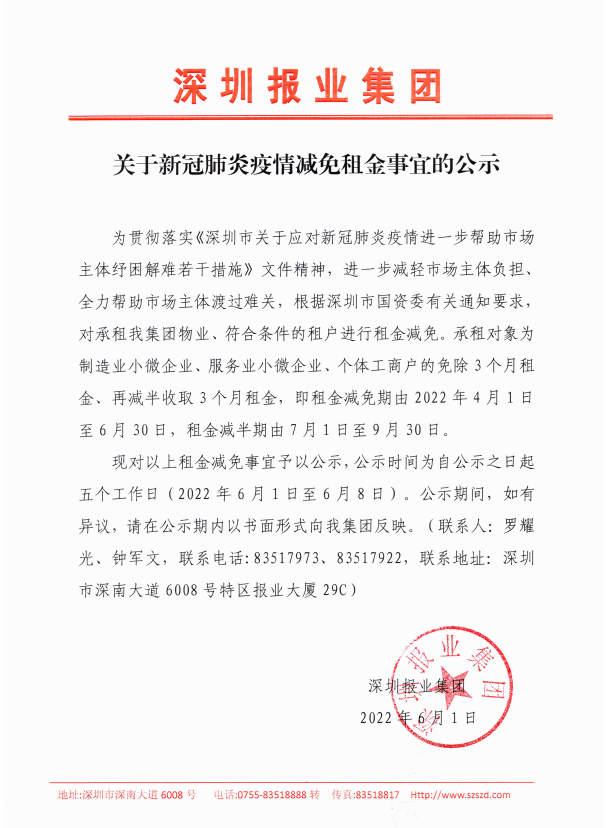 附件:深圳報(bào)業(yè)集團(tuán)2022年物業(yè)出租“三減三免”租戶(hù)名單