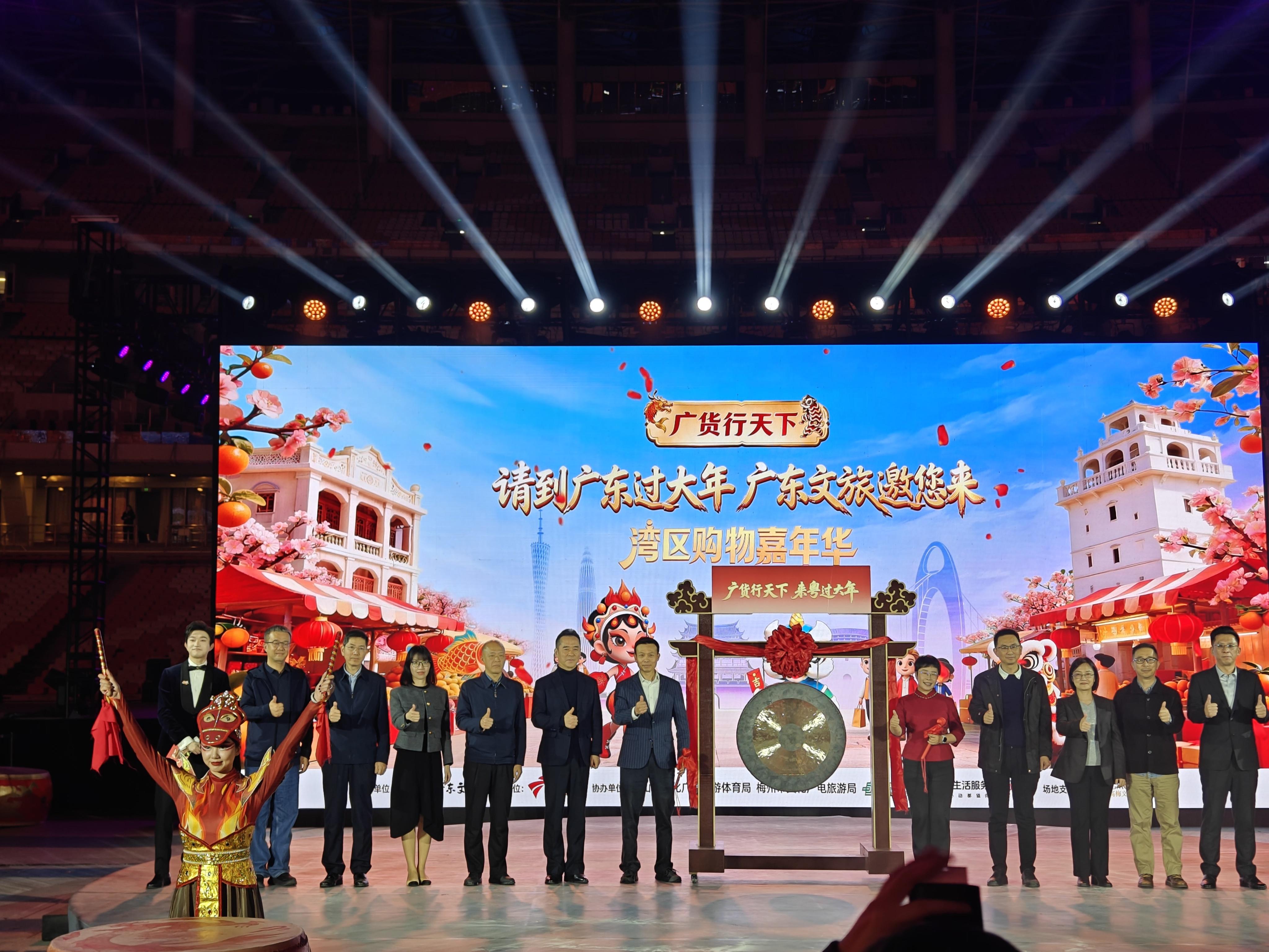 1月25日晚,由廣東省文化和旅游廳主辦的《廣貨行天下,來(lái)粵過(guò)大年——灣區(qū)購(gòu)物嘉年華》活動(dòng)在廣州海心沙舉行發(fā)布儀式。