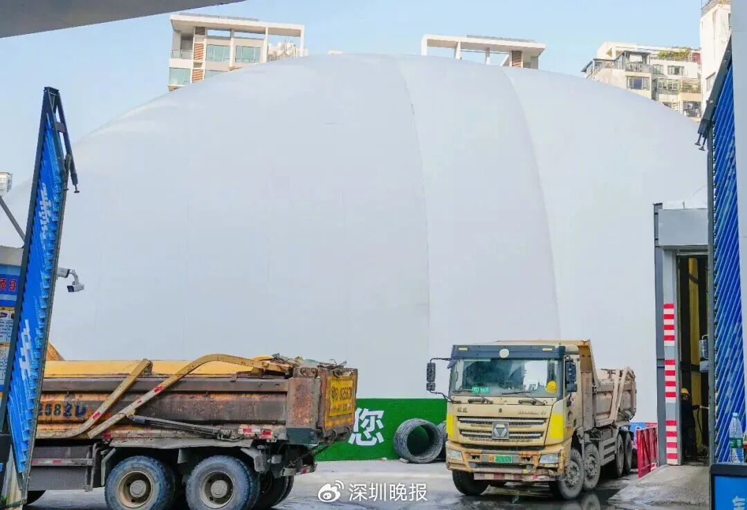 ● 日前,深圳一工程項目在建設中,投入使用了一種近年來興起的建筑施工新技術——基坑氣膜,可有效阻隔噪聲和揚塵,降低施工過程環(huán)境污染。