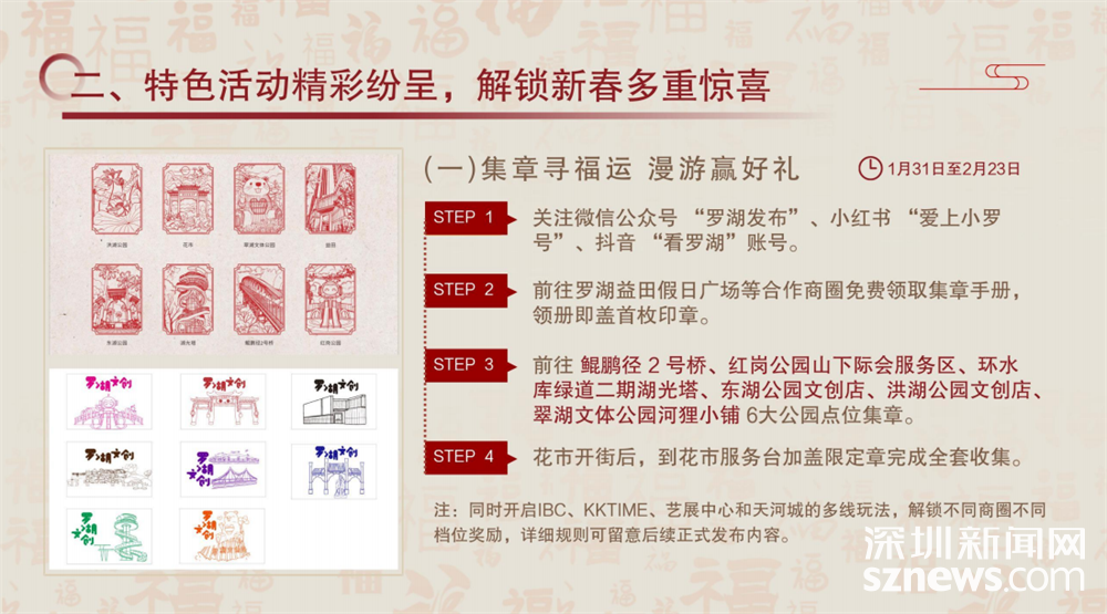 本次花市突破單一場(chǎng)地限制,通過“商圈聯(lián)動(dòng)+八園聯(lián)通”實(shí)現(xiàn)全域消費(fèi)激活。集章活動(dòng)延伸至藝展中心、KK TIME、IBC MALL、深圳天河城等核心商圈,市民關(guān)注“羅湖發(fā)布”微信公眾號(hào)等平臺(tái)后,可免費(fèi)領(lǐng)取集章手冊(cè),前往6大公園點(diǎn)位集章,開市后到花市服務(wù)臺(tái)加蓋限定章完成全套收集,解鎖不同商圈不同檔位獎(jiǎng)勵(lì)。