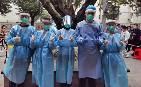 早上9點(diǎn),臨時(shí)增設(shè)的核酸檢測(cè)點(diǎn)已經(jīng)排起了長(zhǎng)隊(duì),身穿藍(lán)馬甲的羅湖工會(huì)干部與身穿紅馬甲的社區(qū)工作者組成一道“藍(lán)紅”防線,他們?cè)诓蓸狱c(diǎn)維持秩序、協(xié)助醫(yī)護(hù)人員進(jìn)行掃碼登記信息、回答各種咨詢提問(wèn).....多次支援一線的防疫經(jīng)驗(yàn)讓工會(huì)干部在此次防疫工作中反應(yīng)迅速、有條不紊。
