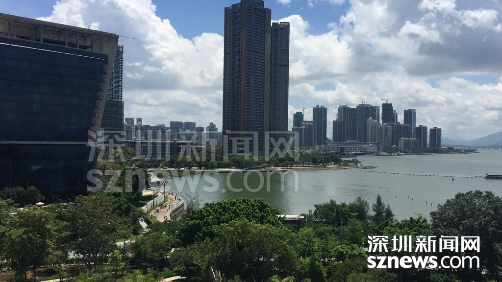 在酒店臨海客房陽臺可看到深圳灣大橋以及附近的游艇碼頭