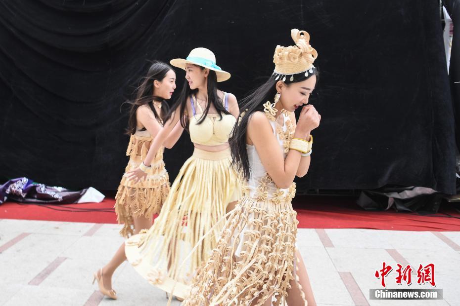 世界地球日 模特身穿草編服飾走秀倡導環(huán)保生活