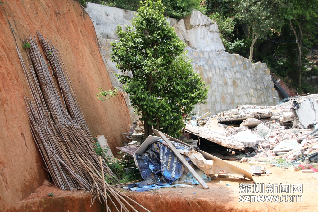 深圳新聞網(wǎng)記者抵達(dá)羊臺(tái)山第一處違法建筑地點(diǎn)(西麗麻磡村奇星路風(fēng)門凹山腰靠山底一側(cè))