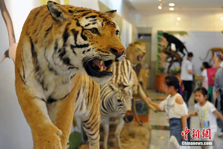 5月27日,各類飛禽走獸活靈活現(xiàn)地出現(xiàn)在民眾的眼前。正在福建博物院展出的第四屆中國(guó)動(dòng)物標(biāo)本大賽的257件惟妙惟肖的標(biāo)本作品集中對(duì)外開放,讓民眾如進(jìn)入“動(dòng)物世界”。本次大賽匯集了全國(guó)標(biāo)本制作企業(yè)、博物館、大專院校、研究所等60多家單位參加,標(biāo)本涵蓋哺乳類、鳥類、爬行類、兩棲類、魚類等動(dòng)物類群的皮張和骨骼標(biāo)本。主辦方希望通過(guò)標(biāo)本大賽,向公眾展現(xiàn)動(dòng)物世界的美麗,宣傳生物多樣性和生態(tài)文明,借鑒吸收國(guó)際標(biāo)本制作先進(jìn)經(jīng)驗(yàn),提高中國(guó)野生動(dòng)植物標(biāo)本制作的整體水平。圖為參賽的老虎標(biāo)本。中新社記者 張斌 攝