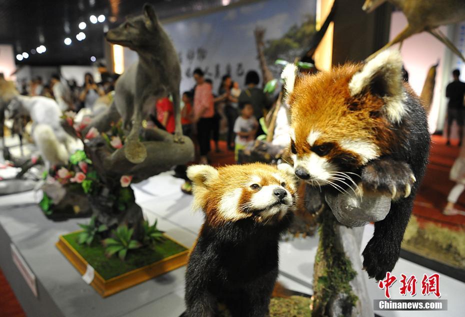5月27日,各類飛禽走獸活靈活現(xiàn)地出現(xiàn)在民眾的眼前。正在福建博物院展出的第四屆中國動物標本大賽的257件惟妙惟肖的標本作品集中對外開放,讓民眾如進入“動物世界”。本次大賽匯集了全國標本制作企業(yè)、博物館、大專院校、研究所等60多家單位參加,標本涵蓋哺乳類、鳥類、爬行類、兩棲類、魚類等動物類群的皮張和骨骼標本。主辦方希望通過標本大賽,向公眾展現(xiàn)動物世界的美麗,宣傳生物多樣性和生態(tài)文明,借鑒吸收國際標本制作先進經(jīng)驗,提高中國野生動植物標本制作的整體水平。圖為大賽參賽作品小熊貓。中新社記者 張斌 攝