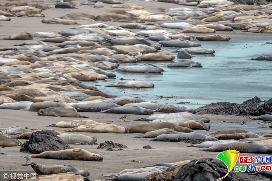 美國加州,阿根廷攝影師Lucio Moujan鏡頭下的圣西蒙海灘,整個(gè)海灘被陽光下午睡的象海豹占領(lǐng)。攝影師說道,“那里大概有數(shù)百只象海豹吧,我不知道具體數(shù)目,但是那有一大群。