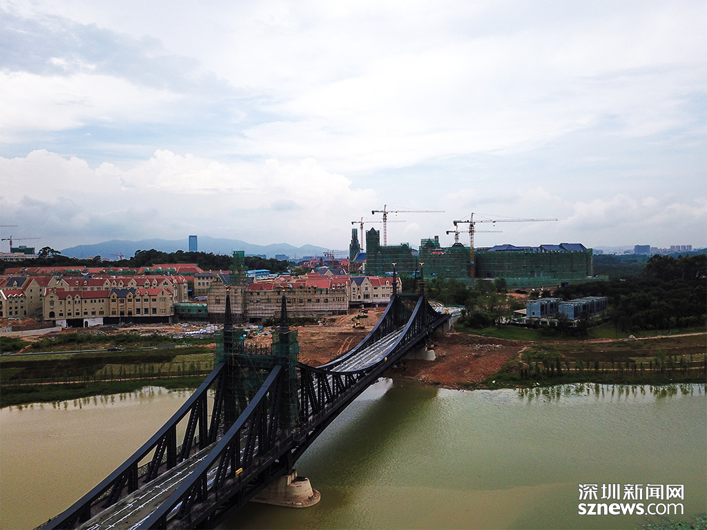 別具特色的鐵橋承接了連接華為“歐洲小鎮(zhèn)”內兩座小島的重任