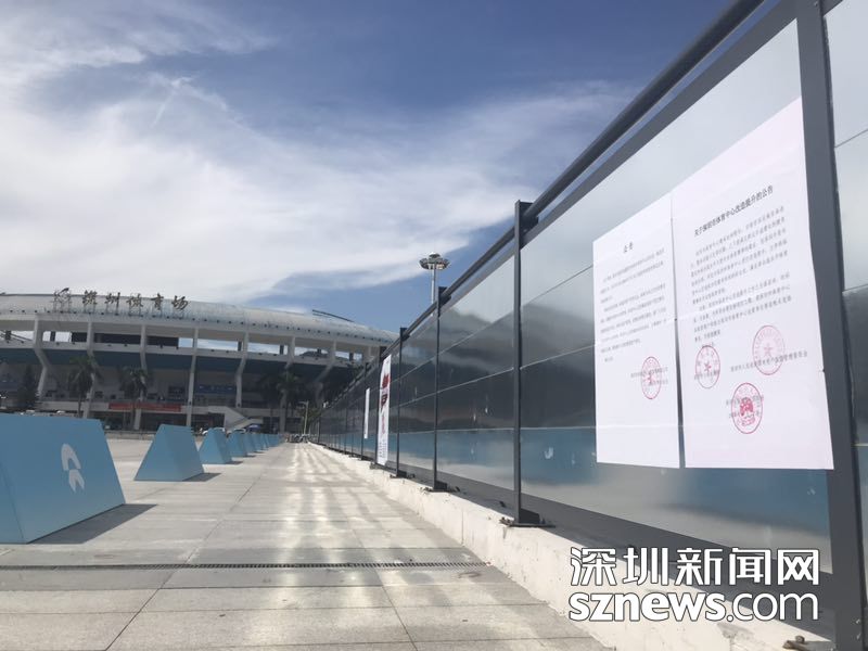 在進(jìn)入深圳體育場(chǎng)的路上,圍擋張貼了改建公告