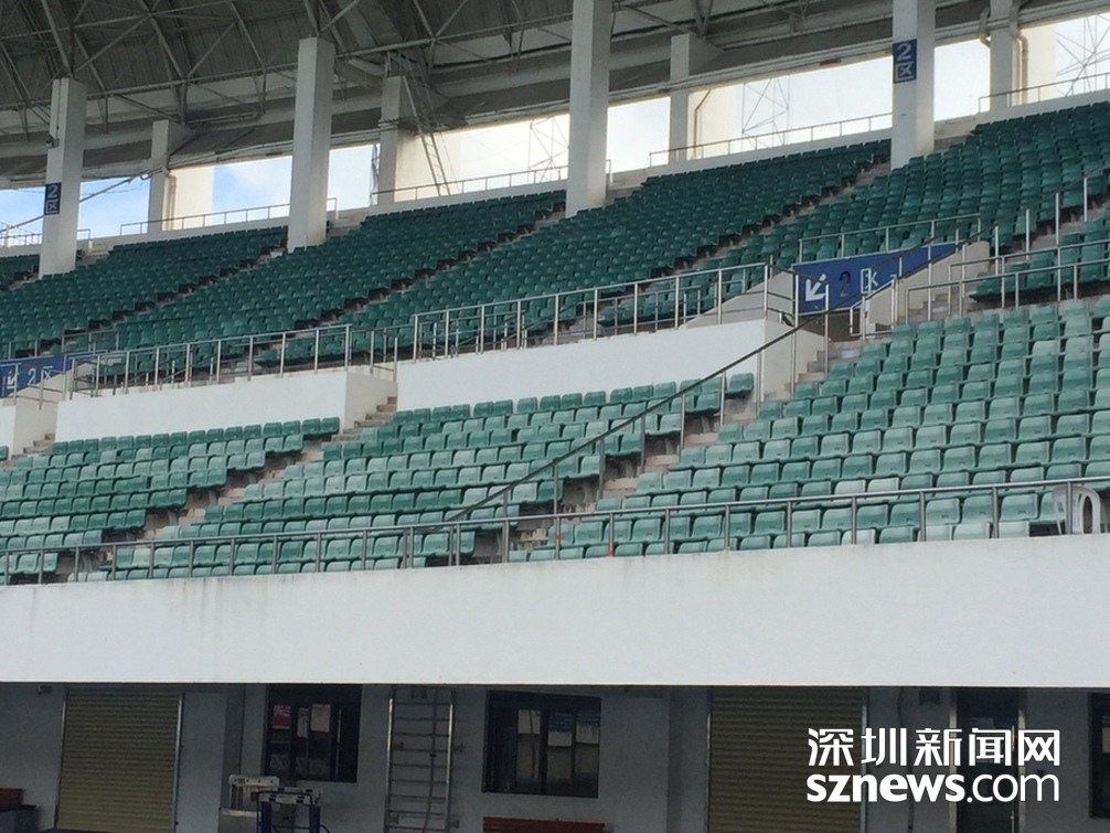 深圳體育場(chǎng)觀眾座椅經(jīng)多年風(fēng)吹日曬,褪色明顯