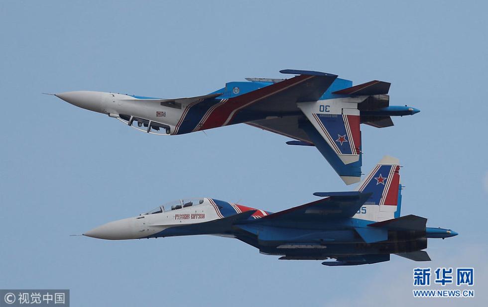 當(dāng)?shù)貢r(shí)間2018年8月4日,俄羅斯梁贊,2018“航空飛鏢”國(guó)際軍事比賽即將開(kāi)幕,特技飛行隊(duì)在彩排。(圖片來(lái)源:視覺(jué)中國(guó))