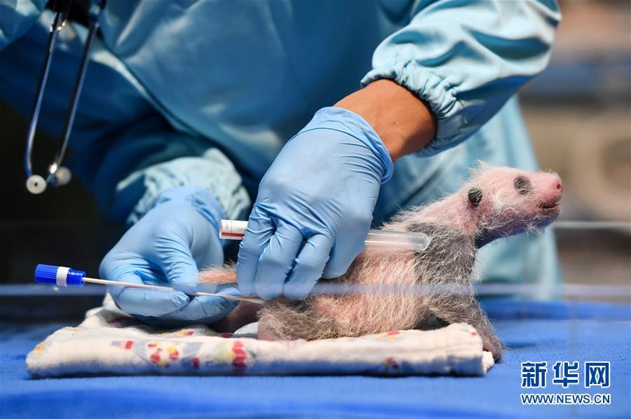 當(dāng)日,在廣州的華南大熊貓繁育基地,大熊貓寶寶“婷仔”和“隆仔”一起接受了中國(guó)大熊貓保護(hù)研究中心專(zhuān)家的體檢。“婷仔”于今年7月29日剛剛出生,“隆仔”則在8月12日迎來(lái)了滿月生日。