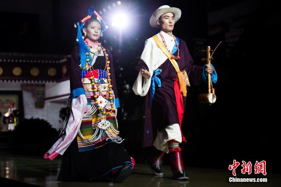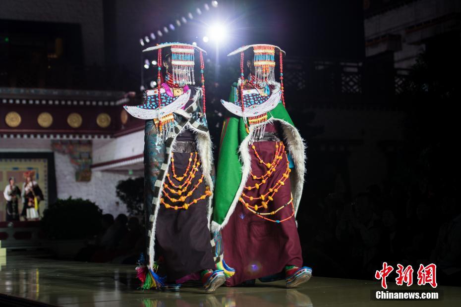 8月12日晚,由西藏職業(yè)技術(shù)學(xué)院與北京服裝學(xué)院共同打造的“凈美雪頓·美好生活”西藏民族服裝與服飾展演活動(dòng)在拉薩舉行。現(xiàn)場通過傳統(tǒng)篇、現(xiàn)代篇與未來篇三個(gè)篇章,展演了藏族傳統(tǒng)服裝26套,設(shè)計(jì)創(chuàng)新服裝58套,共計(jì)84套服裝。圖為模特展示藏族傳統(tǒng)服飾。中新社記者何蓬磊 攝