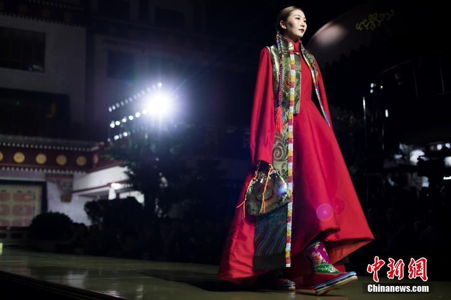 8月12日晚,由西藏職業(yè)技術(shù)學(xué)院與北京服裝學(xué)院共同打造的“凈美雪頓·美好生活”西藏民族服裝與服飾展演活動(dòng)在拉薩舉行?,F(xiàn)場通過傳統(tǒng)篇、現(xiàn)代篇與未來篇三個(gè)篇章,展演了藏族傳統(tǒng)服裝26套,設(shè)計(jì)創(chuàng)新服裝58套,共計(jì)84套服裝。圖為模特展示現(xiàn)代設(shè)計(jì)的創(chuàng)新藏族服飾。中新社記者何蓬磊 攝