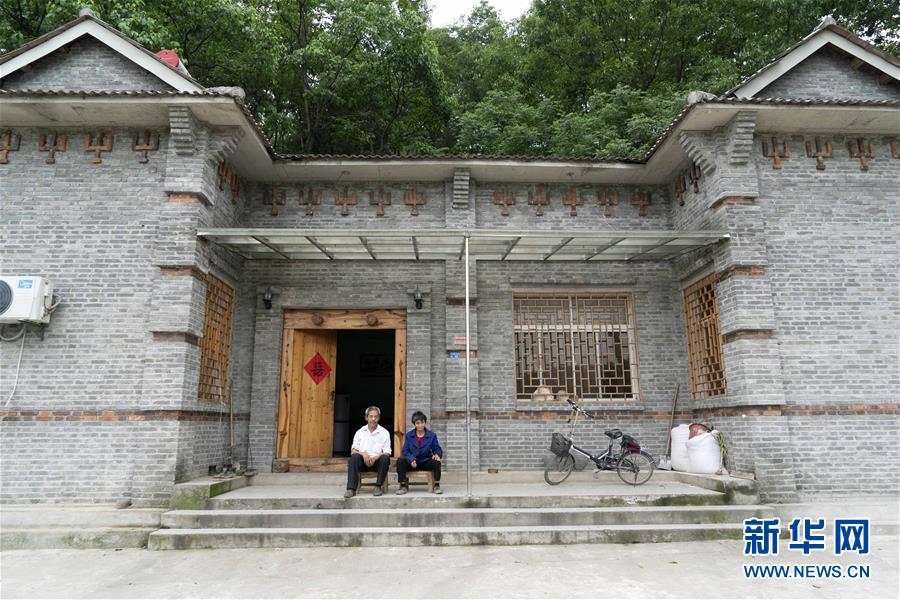 65歲的堰河村村民方文軍與愛人在自家的實(shí)心墻結(jié)構(gòu)樓房前(5月11日攝)。
