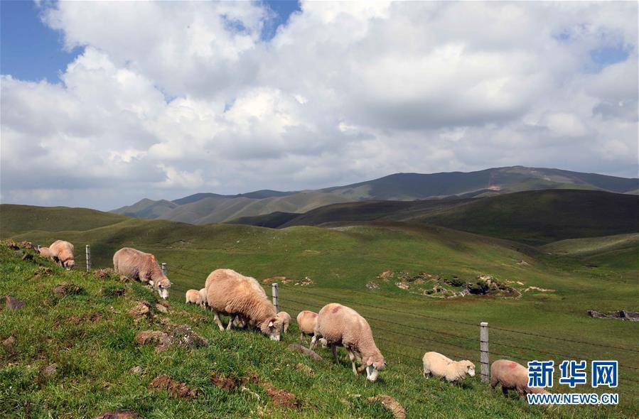 8月27日,當(dāng)?shù)剞r(nóng)民飼養(yǎng)的羊在大海草山吃草。新華社記者楊宗友 攝