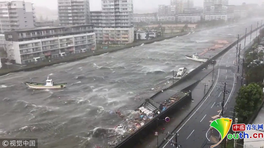 9月4日,25年來威力最強(qiáng)的臺(tái)風(fēng)“飛燕”登陸日本西部,帶來強(qiáng)風(fēng)和強(qiáng)降雨,至少造成7人喪生,逾百人受傷,逾百萬戶停電,關(guān)西國(guó)際機(jī)場(chǎng)更因淹水關(guān)閉,數(shù)百航班取消。