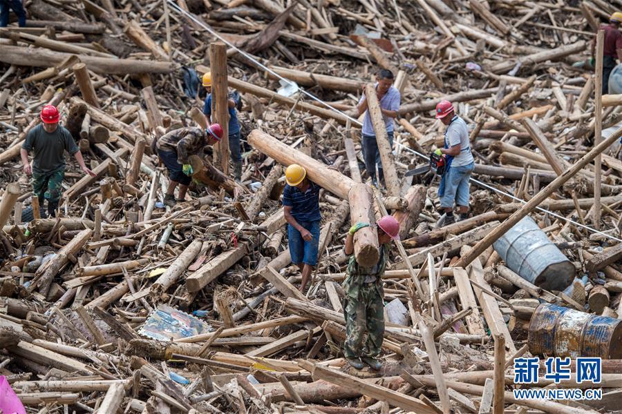9月4日,當(dāng)?shù)厝罕娫诼槔跗驴h猛硐瑤族鄉(xiāng)壩子橋區(qū)域清理河道內(nèi)堆積的木材。當(dāng)日,云南麻栗坡山洪泥石流災(zāi)害救援工作繼續(xù)開(kāi)展,救援人員在現(xiàn)場(chǎng)全力搜尋失蹤人員。新華社發(fā)方超 攝 圖片來(lái)源:新華網(wǎng)